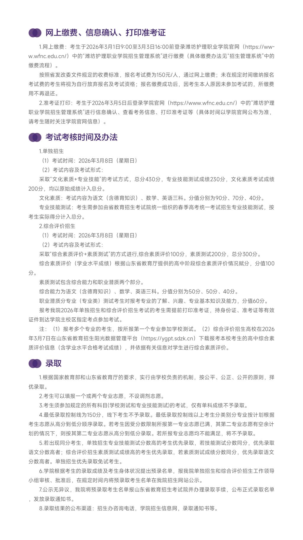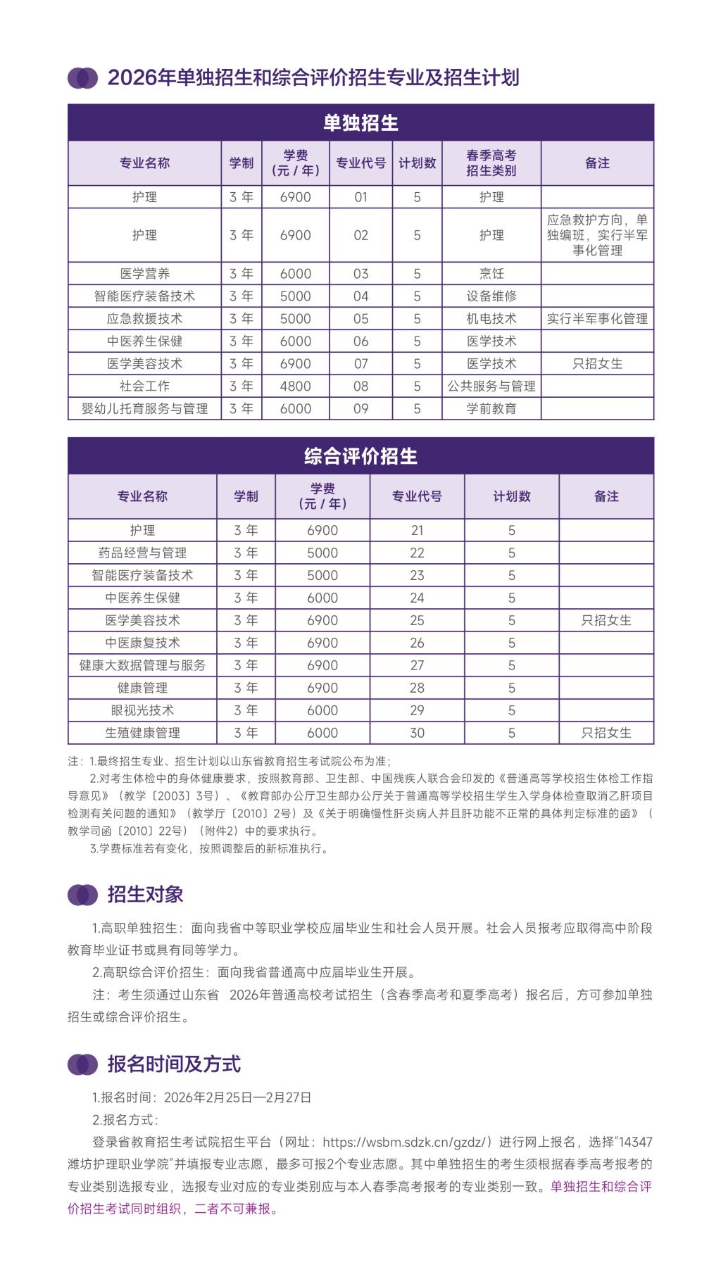 潍坊护理职业学院2026年单独招生和综合评价招生简章